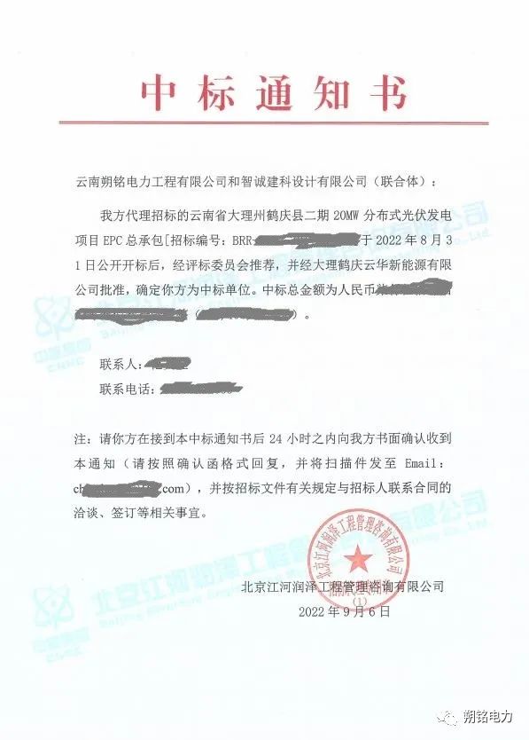 2022年9月6日,中標(biāo)喜訊紛至沓來,公司憑借突出的業(yè)績、雄厚的技術(shù)實(shí)力以及良好的企業(yè)信譽(yù),在眾多競爭對手中脫穎而出,中標(biāo)云南省大理州鶴慶縣二期20MW分布式光伏發(fā)電項(xiàng)目EPC總承包項(xiàng)目。
